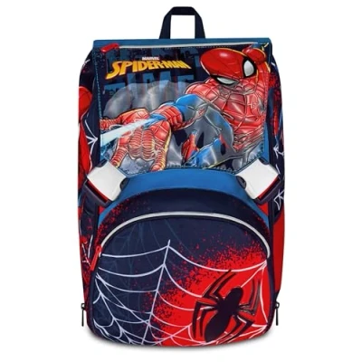 Seven Spiderman Double Compartment Expandable Backpack, blue, Maxi Capacity, Preformed Backrest, Child, Elementary School, Blu, Casual