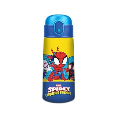 Seven Spiderman Thermal Water Bottle, 460 ml, Steel, Straw, Automatic Opening, Watertight, Temperature Maintenance: Hot 12h/Cold 24h, School and Kindergarten