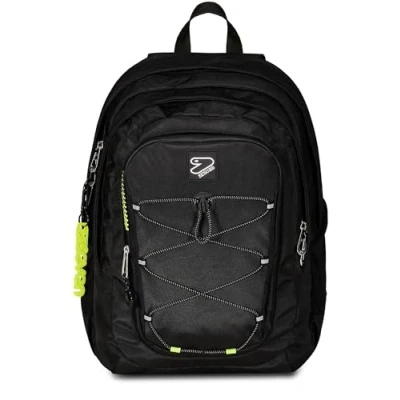 Seven Tech School Backpack, Black, Double Compartment with PC Pocket and Bottle Pocket, Taglia unica, modern