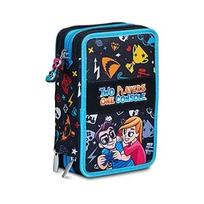 Seven Two Players One Console School Pencil Case 3 Zip Complete with Markers, Pencils, Etc.. Organized