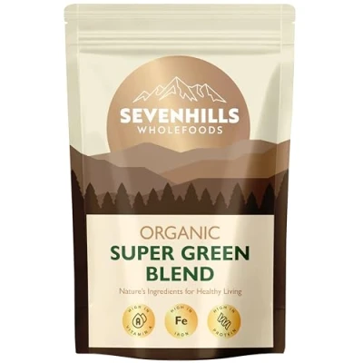 Sevenhills Wholefoods Organic Super Green Superfood Blend 400g, 80 Servings, Supports Skin, Immunity & Tiredness, Powder with Spirulina, Chlorella, Wheatgrass, Barley Grass
