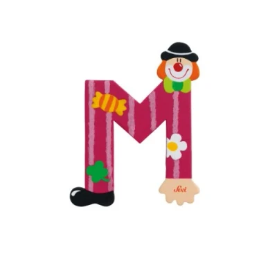 Sevi 81749 Wooden Letter M Clown Approx. 10 cm, Door Letters for Children's Room, ABC Educational Toy Children from 3 Years, Clowns Assorted, Purple/Green, Multicoloured,