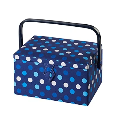 Sewing Online Medium Box,Navy Spot Fabric 26 x 18 15cm Storage and Organiser Basket with Compartments for Supplies,Accessories,Thread,Needles,and Scissors GA1123M