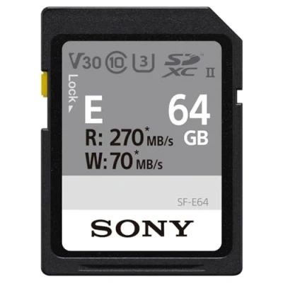 Experience faster transfer speeds with the Sony SF-E64A UHS-II SD card. Boasting an impressive read speed of up to 270MB/s, this card allows one to transfer even large media files to PC in a matter of seconds, when used with a UHS-II SD card reader. No more waiting around – get things done quicker Easy to use Durable and strong