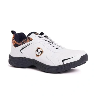SG Pro Kick Spinner Cricket Shoes White, Navy & Orange Size: EU 43, UK 9, US 10 Material: Mesh for Boys and Men Classic Comfortable Toe Heel Protection Supersoft Flexibility