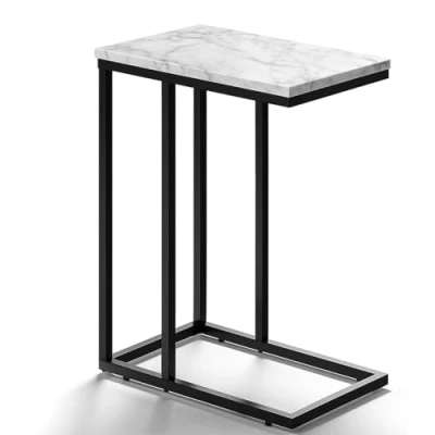 SG Traders C Shaped Side Table Coffee End Under Sofa Living Room Snack Laptop Holder Stable Metal Frame for Bedroom Office Bed Easy to assemble (White Marbel)