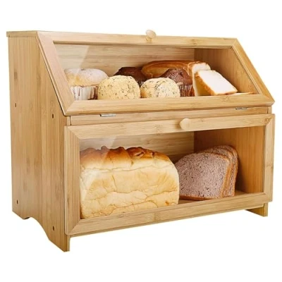 SG Traders Double Decker Bamboo Bread Bin 2 Layer Box Eco friendly Kitchen Storage with Lid for Freshness Natural, Organic, and Sustainable Food Solution (Modern Natural Wood)