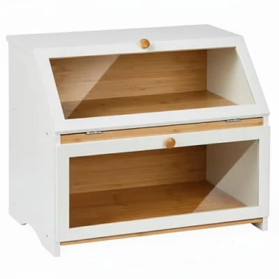 SG Traders Double Decker Bamboo Bread Bin 2 Layer Box Eco Friendly Kitchen Storage with Lid for Freshness Natural, Organic, and Sustainable Food Solution (Modern White)
