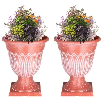 SG Traders Large Urn Plant Pot Stand, Flower Pots Outdoor Garden Planters, Indoor Pot, Tall Planter with Drainage Holes, Strong Plastic Patio Home Plants (Pack of 2)