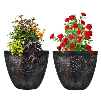 SG Traders Pack Of 2 X Large Plastic Round Chengdu Garden Plant Pots Planter Indoor Outdoor Top Diameter Flower with Drainage Holes, Beautiful Planters for Your Needs (30, 36, 40cm)
