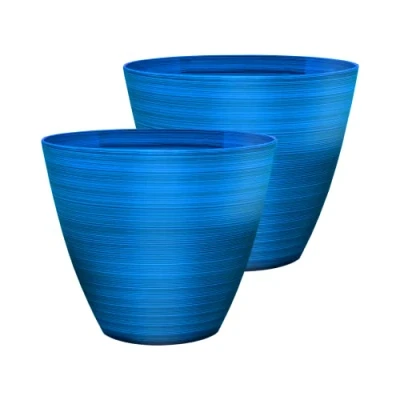 SG Traders Plastic Plant Pots Flower Pot with Drainage Holes, Garden Planters for Outdoor, Containers Home, Stylish Glossy Design Pots, Set of 2, 25cm,30cm Outdoor Planter