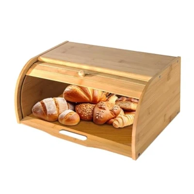 SG Traders Roll Top Bamboo Bread Bin, Eco friendly Kitchen Storage Box with Lid for Optimal Freshness Natural, Organic Design, and Sustainable Food Solution (Natural Wood)