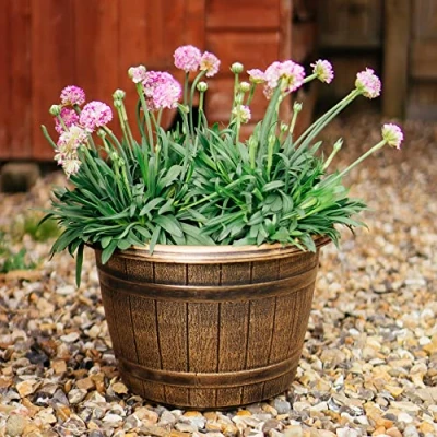 LONG LASTING BARRELS: SG Traders Barrel Tub Planter has its unique markings, adding to the individuality of your garden. This barrel is not only great for adding character to your garden but is also durable and long-lasting, ensuring that your plants are well-protected. So, if you're looking to elevate your outdoor space, be sure to check out the collection of barrel planters from SG Traders. KEY FEATURES: An attractive and stylish addition to your home. Plant anything from fruit and vegetables to large shrubs or flower displays. Not only that, the barrel is lightweight meaning when you wish to change the look of your garden you can easily move this without any effort. An attractive and stylish addition to your home, this lightweight plastic barrel planter contains 6 drainage holes making it ideal for outdoor garden use. HALF BARREL CASK PLANTER: SG Traders offers a wide range of barrel planters that can help you add a touch of elegance to your garden. Our Half Barrel planters are the perfect choice for anyone looking for a unique way to display their plants and flowers. Half-barrel cask planter also adds a rustic charm to your outdoor space. When it comes to mimicking the texture, grain and look of a wooden oak barrel, then you would be hard-pressed to find anything better than our Barrel. PREMIUM QUALITY: SG Traders offers a wide range of high-quality half-barrel planters, made from premium plastic materials to ensure durability and long-lasting beauty in your garden. Our barrel planters are perfect for planting everything from flowers to small trees. The premium plastic material used in our barrel planters is UV-resistant, ensuring they won't fade in the sun or become brittle over time. MULTI-PURPOSE: You can grow various plants indoors or outdoors in round plastic planters, such as orchids, snake plants, mint, parlour palms, herbs, devil’s ivy, cactus, and aloe. This retro flower pot is ideal for balconies, courtyards, offices, etc. SIZE: Top Diameter-30cm.