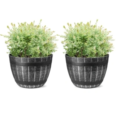 LONG LASTING BARRELS: SG Traders Barrel Tub Planter has its unique markings, adding to the individuality of your garden. This barrel is not only great for adding character to your garden but is also durable and long-lasting, ensuring that your plants are well-protected. So, if you're looking to elevate your outdoor space, be sure to check out the collection of barrel planters from SG Traders. KEY FEATURES: An attractive and stylish addition to your home. Plant anything from fruit and vegetables to large shrubs or flower displays. Not only that, the barrel is lightweight meaning when you wish to change the look of your garden you can easily move this without any effort. An attractive and stylish addition to your home, this lightweight plastic barrel planter contains 6 drainage holes making it ideal for outdoor garden use. HALF BARREL CASK PLANTER: SG Traders offers a wide range of barrel planters that can help you add a touch of elegance to your garden. Our Half Barrel planters are the perfect choice for anyone looking for a unique way to display their plants and flowers. Half-barrel cask planter also adds a rustic charm to your outdoor space. When it comes to mimicking the texture, grain and look of a wooden oak barrel, then you would be hard-pressed to find anything better than our Barrel. PREMIUM QUALITY: SG Traders offers a wide range of high-quality half-barrel planters, made from premium plastic materials to ensure durability and long-lasting beauty in your garden. Our barrel planters are perfect for planting everything from flowers to small trees. The premium plastic material used in our barrel planters is UV-resistant, ensuring they won't fade in the sun or become brittle over time. MULTI-PURPOSE: You can grow various plants indoors or outdoors in round plastic planters, such as orchids, snake plants, mint, parlour palms, herbs, devil’s ivy, cactus, and aloe. This retro flower pot is ideal for balconies, courtyards, offices, etc. SIZE: Top Diameter-31cm.