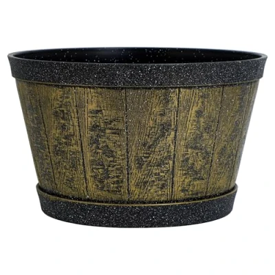 PREMIUM QUALITY: Bring a touch of country farmhouse to your surroundings with our Whisky barrel half barrel collection. An authentic heavy duty durable plastic planter that is ideal for all sorts of planting ideas. Ideal for the cultivation of vegetables, salads, and flowers/plants. An attractive and stylish addition to your home, lightweight plastic barrel planter makes it ideal for indoor or outdoor use. Fantastic Finish, Made of quality plastics, ideal for planters, flower, and herbs etc. PREDRILLED DRAINAGE HOLES & MATERIAL: The bottom of SG Traders whisky barrel has 4 pre-drilled drainage holes design, which can help drain water from the bottom to maintain the healthy growth of plants. Whether you want to grow your favorite flowers or just want to find some garden art, our flower pots are your ideal choice. Our whisky barrel garden pot is Ideal for rustic decoration, gardens and terraces, window frames. SG Traders Whisky barrel made of recycled premium plastic. KEY FEATURES: An attractive and stylish addition to your home. Plant anything from fruit and vegetables to large shrubs or flower displays. Not only that, the barrel is lightweight meaning when you wish to change the look of your garden you can easily move this without any effort. Our plant pots are suitable for planting and cultivating any flowers, seeds, potatoes, fruits, and aromatic herbs. Perfect for taking your gardening hobby to the next level. Ideal for outdoor gardens. ROBUST WHISKY BARREL: SG Traders Whisky Barrel is made of durable material, and the barrel flower pot is resistant to scratches and mechanical damage. Only the highest quality materials are used in the production. The unique and timeless design gives any exterior an extraordinary look. It is suitable for both classic and modern gardens. Barrel Shape Design: This planter features a classic barrel shape inspired by traditional wooden barrels, offering a rustic farmhouse look while being made from durable plastic. The rounded form provides ample planting space for flowers, herbs, and shrubs, while the wide top and tapered base enhance stability. Its barrel-style design adds character to gardens, patios, and balconies, creating a decorative focal point without the weight or maintenance of real wood barrels.