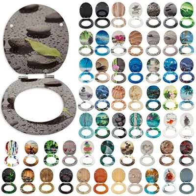 SG Traders Toilet Seat Covers: Wooden core toilet seat with timeless and modern 3 sided design printed. The toilet lid (top and bottom) and the toilet seat are printed on the top. The underside of the seat is classic white. SG Traders Toilet Seat Covers are available in 59 beautiful different designs. SG Traders offers with a moisture-resistant, pore-free surface for the toilet seat covers. Easy To Install: Wooden core toilet seats come in standard size with adjustable hinges so they fit on almost all commercial toilet bowls (wall-mounted or pedestal). It’s Quick and easy installation that thanks to the quick-fastening set included. SG Traders modern, high-quality toilet seat with wooden core, chrome-plated stainless steel hinges and integrated soft close assures gentle, silent toilet lid and seat closure. Soft Close: This toilet seat lid closes pleasantly and quietly. The loud banging is the past. A light tap is enough and the lid of the toilet seat lowers quietly and gently. This is not only comfortable but does not damage the toilet seat and ceramics. The toilet lid is easy to care for due to the smooth MDF surface and allows easy hygienic cleaning. Easy To Clean: SG Traders stylish toilet seat cover's smooth surface of the toilet lid is impressively hygienic and easy to clean, suitable for standard commercial cleaning products and offers maximum hygiene. High-quality, strong MDF and sturdy metal hinges also ensure durability and excellent stability. Dimensions: SG Traders stylist toilet seat cover size: 42.5 x 35.8 cm (L x W), Seat size: 43.7 x 37.8 cm (L x W), Aperture size: 28 x 24 cm (L x W) and Height: 5.3 - 5.5 cm., Manufacturer: SG Traders