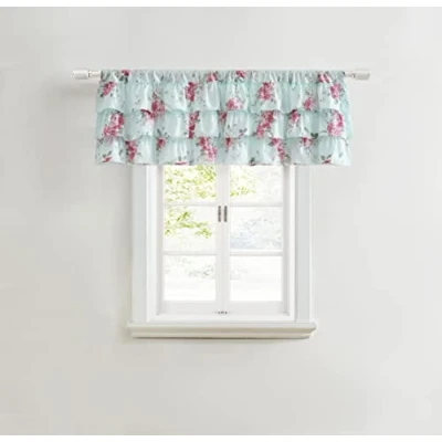 MATERIAL: 100% Cotton Percale INCLUDES: (1) Valance FEATURES: Delicate 3-tiered ruffle construction with rod pocket top; beautiful floral home decor for any room in your house DIMENSIONS: 52" x 18" CARE: Machine washable for easy care- machine wash cold and tumble dry low; do not bleach