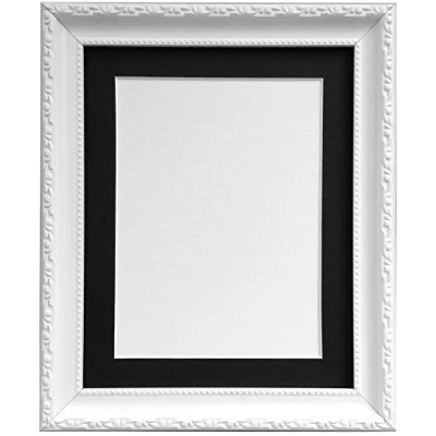 Shabby Chic White Picture Photo Frame with Black Mount 40 x 50 cm For Image size A3 (Plastic Glass)