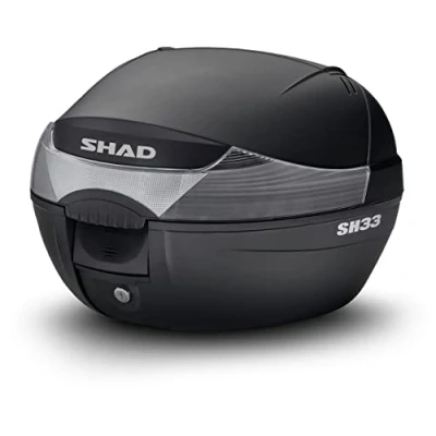 The SH33 top box is one of the smallest top boxes in SHAD’s top box range, weighing only 3kg but still being able to carry a full face helmet plus accessories! The SH33 top box is perfect for mopeds or smaller bikes. The SH33 top box is Fully waterproof, aerodynamic, aesthetically designed with a well rounded shape with integrated reflectors and different lid colour options. The SH33 top box is highly impact resistant with minimal thickness for ultra lightness. Most bikes require a SHAD bike specific top box fitting kit - only a mounting plate is included with the top box. Capacity - 33 litre. 1 Full face helmet and accessories. Dimensions: Width: 43cm, Height: 31cm, Depth: 42cm