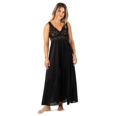 Shadowline Classy Nightgowns for Women, Elegant Women's Sleepwear, Black, Medium