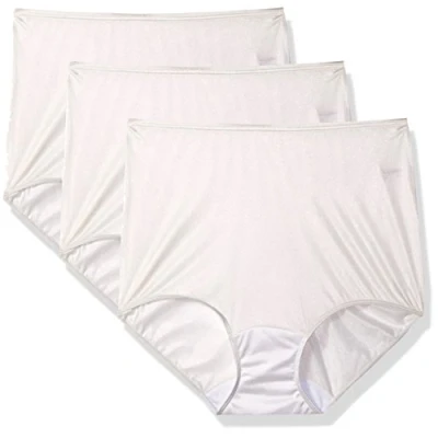 Covered elastic at waist and leg openings Silky soft satintrique nylon Sewn-in white cotton gusset 3-Pack of underwear Panties also available in sizes 8 -9 -10 -11