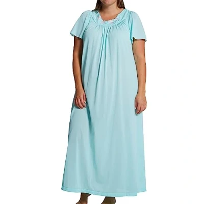 Shadowline Women's Plus Size Petals 53 Inch Short Flutter Sleeve Long Gown blue 2X