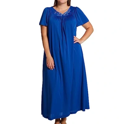 Shadowline Women's Plus Size Petals 53 Inch Short Flutter Sleeve Long Gown Nightgown, Navy, 3X