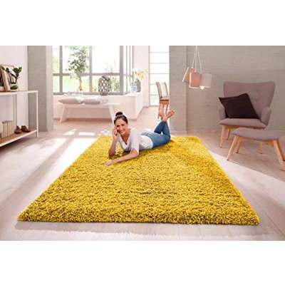 SHAGGY RUG 30MM / 3cm Modern Rugs Living Room Extra Large Small Medium Rectangular Size Soft Touch Thick Pile Area Non Shedding (Ochre Yellow, 160cm x 230cm (5.5ft 7.5ft))