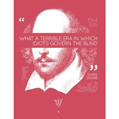 Shakespeare LARGE Notebook #8: What a Terrible Era in Which Idiots Govern The Blind College Ruled to write 8.5x11" 100 Lined Pages