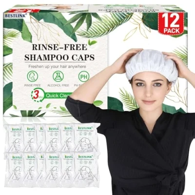 No Rinse & No Residue: Bestlink Waterless Shampoo Caps with no residue formula can thoroughly cleanse the dirt and oil, refreshing your scalp and hair without rinse, leaving your hair soft and fragrant for a long time 3 Mins Quick Clean: No microwave needed, simply wet the shower cap and massage with the shampoo cap on for 3 minutes, then towel dry hair. Conveniently achieve clean and soft hair independently for limited mobility person anywhere Safe and Convenient: The no rinse shampoo cap allows easy hair cleaning without leaving bed or hair washing aid. Reducing the need to move patients, lowers the risk of wounds getting wet. Provides a safe and comfortable process for individuals and caregivers Spa-Like Experience: Rinse free shampoo caps with a hypoallergenic formula, enriched with herbal extracts, vitamin E, and provitamin B5. Infused with a pleasant fragrance, transforms bed hair cleansing into a soothing experience while keeping hair soft, and clean The package included 12 individually wrapped dry shampoo caps for women and men. Suitable for those unable to traditional shower: bedridden, post-surgery, disabilities, limited mobility elderly, camping, road trips or any emergency situations
