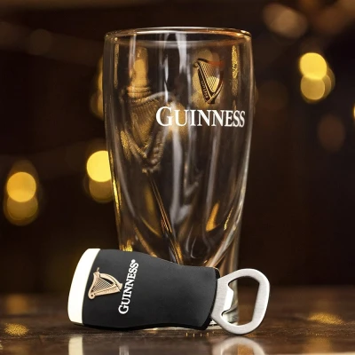Enjoy your favourite stout in style with the Guinness Contemporary Glass and Bottle Opener Set. This expertly crafted set features the iconic Guinness tulip pint glass alongside a matching bottle opener shaped like a Guinness pint. Perfectly designed for the true Guinness fan, it combines functionality with classic branding to elevate your drinking experience at home. Whether you’re cracking open a fresh bottle or savouring a perfectly poured pint, this set is ideal for all your Guinness needs and kitchen essentials. The tulip glass enhances the flavour and aroma of Guinness Extra Stout, while the pint-shaped bottle opener adds a fun and practical touch to your barware collection. Officially licensed Guinness merchandise, this contemporary set makes a fantastic gift for beer lovers or a stylish addition to your own home bar. Celebrate the spirit of Guinness with this unique pairing — the perfect way to enjoy every pint, every time.