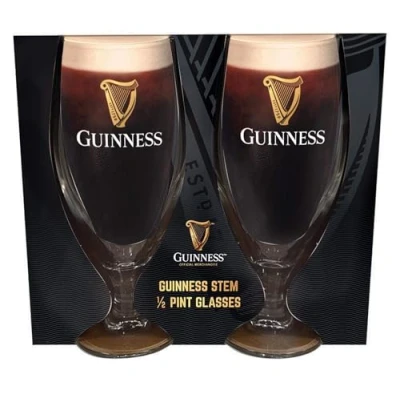 Guinness - Half Pint Stem Glasses - 2 Pack EXCLUSIVE GUINNESS MERCHANDISE - These authentic Guinness collectibles are official merchandise from the iconic brand (brewing since 1759); we only use the highest quality materials, the best designs, and a passion for life! ICONIC GUINNESS DESIGN - Brand new design. These glasses are beautifully curved, with a stemmed base for maximum circulation. THE PERFECT GIFT - With an official design, these authentic Guinness glasses are a unique Guinness collector items, perfect for home bars and to gift beer enthusiasts on Father's Day, birthdays, anniversaries, or Christmas. EASY & PRACTICAL - Savour your favourite beer with a generous 600ml capacity in each of these embossed Guinness glasses, allowing you to fully enjoy your brew. Hand wash to maintain quality and for easy maintenance. Dimensions:, Manufacturer: Shamrock Gift Company