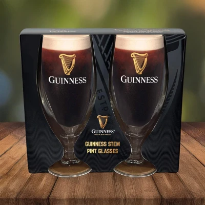 Raise a glass with the Guinness Pint Stem Glass Duo, the perfect set for enjoying your favourite stout in true Guinness style. This duo features rounded stem pint glasses, each adorned with the iconic Guinness harp logo and classic Guinness writing—a timeless design that celebrates the rich heritage of this legendary brew. Ideal for Guinness lovers and glass collectors, these elegant glasses bring a touch of sophistication to any gathering. Whether you're relaxing with a friend, celebrating a special occasion, or simply enjoying a pint, these glasses elevate every moment. Durable, stylish, and full of history, the Guinness Pint Stem Glass Duo makes a great gift for those who appreciate the finer details of enjoying a perfectly poured pint. Perfect for sharing with friends, this set is a must-have for any Guinness enthusiast!