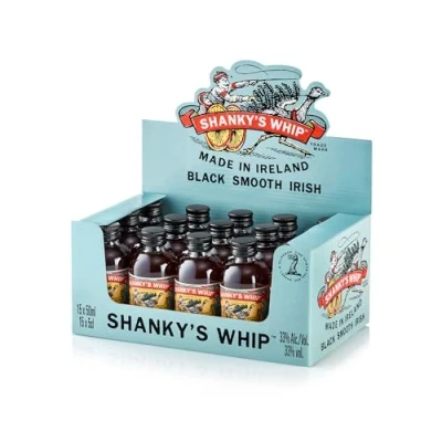 BLACK IRISH WHISKEY - Shanky's Whip Irish Whiskey Liqueur is a smooth and sweet black whiskey liqueur which packs a punch. Shanky's is made in County Cavan, Ireland and is a perfect addition to a pint of the black stuff. CARAMEL & VANILLA - Silky Smooth, Shanky's Whip tastes just like a creamy whiskey liqueur, without the cream! Vanilla and caramel take centre stage, with notes of toffee and maple. It is gorgeous. SHOTS, COFFEE & COCKTAILS - Shanky's Whip is ideal on its own as a shot, simply poured over ice or mixed with cola. Add a shot to your stout, or as a winter warmer in coffee or hot chocolate. BUCK THE TREND - Shanky's Whip is different to anything you have tried before. Just read the reviews! Perfect for bring to the party, mixing into your favourite cocktails or as a gift for someone you really like 15 X 50ML MINIATURES PACK. Share the Shanky's at your celebration! Whiskey Miniatures are perfect as wedding favours, parties, events or as little gifts. Our shots pack is 50ml per bottle, rather than your average 2cl.