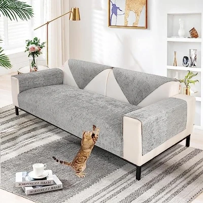 SHANNA Soft Chenille Sofa Cover 1/2/3/4 Seater, New Universal Non Slip Corner L Shape Solid Thick Textured Slipcovers for Living Room(Grey, 90 * 160cm Seat Cover)