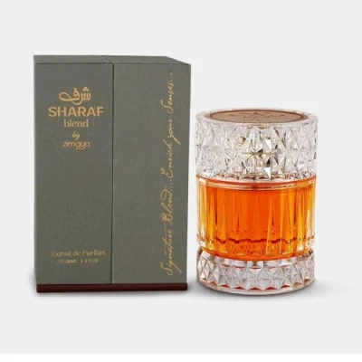 Zimaya Sharaf Blend Extrait De Parfum 100ml: a captivating fragrance experience inspired by the finest cognac. Immerse yourself in a symphony of rich cognac oil, complemented by notes of oak, cinnamon, and tonka bean. Indulge in this exquisite olfactory journey, where luxury meets enchantment.