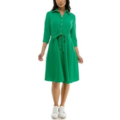 SHARAGANO Women's Button Front Pleated Shirt Casual Dress, Lily Pad, 14