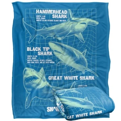 SHARK WEEK: TELEVISION SERIES ultra silky touch blanket, 300 GSM fabric provides warmth and comfort yet is lightweight and breathable, that will make a great decorative addition to any room Shrink and fade resistant, the products are hand-printed using a dye sublimation process; this design has amazing color vibrancy & made of 100% polyester that is super soft and long lasting Size: 152 x 127 cm microfiber fleece fabric with double overlock stitch to create ultra-fluffiness and durability; this all-purpose blanket makes the optimum holiday gift, birthday present, or collector's item The designs are created by the talented in house graphic art team who often hand draw and illustrate each design Care, the products are machine washable; tumble dry low; not to mention, the products are the optimum holiday gift, birthday present, or just treat yourself