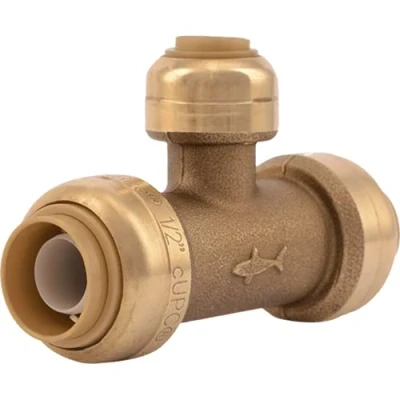 REDUCING TEE: Water service coupling features innovative push to connect technology to allow for quick installation when joining different kinds of pipe; ideal for use in tight spaces VERSATILE: Plumbing fitting compatible with PEX, copper, CPVC, PE-RT and SDR-9 HDPE pipe; approved for behind-the-wall applications with no access panels EASY TO INSTALL: Push to connect technology allows for easy installation without the need for glue, soldering, or additional tools; can be installed in wet lines **Removable using Disconnect Tongs or Disconnect Clip (Sold separately)** LEAD FREE: Connector tee is composed of strong and sturdy lead free DZR brass CERTIFIED: PEX crimp fitting is rated for 200 psi and 200 degrees F (93 degrees C), Manufacturer: Cash Acme