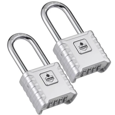 [Heavy Duty Long Shackle Security] Premium SharkByte 52mm padlock with extra-long 8mm stainless steel shackle, ideal for fitting around thicker hasps, multiple latches, gates, lockers and storage units. [Weatherproof & Rust Resistant] Built with zinc alloy body and 304 stainless steel shackle, tested for 180+ hours salt spray resistance. Designed to withstand rain, snow and harsh outdoor conditions. [4-Digit Resettable Code] Offers 10,000 possible combinations for maximum protection. Resettable design allows easy reprogramming, while precision metal dials ensure reliable use. [One-Button Locking System] Unique quick-release mechanism allows fast and secure locking/unlocking after entering your code – smoother and more reliable than traditional locks. [Hidden Password Reset & Anti-Error Design] Concealed reset system prevents accidental changes, keeping your code safe and secure. [Wider Application] The longer shackle increases versatility – ideal for fences, warehouse units, toolboxes, sheds, gates, storage lockers and site equipment. Perfect for both home and business use. [Value 2-Pack Bundle] Cost-effective twin pack – ideal for securing multiple entry points such as front & back gates, double sheds, or for sharing with family, staff or team members. [Trusted B2B Security Solution] SharkByte locks are relied upon by schools, NHS trusts, government bodies, gyms, tradespeople and businesses across the UK for dependable everyday security., Manufacturer: SharkByte Trading