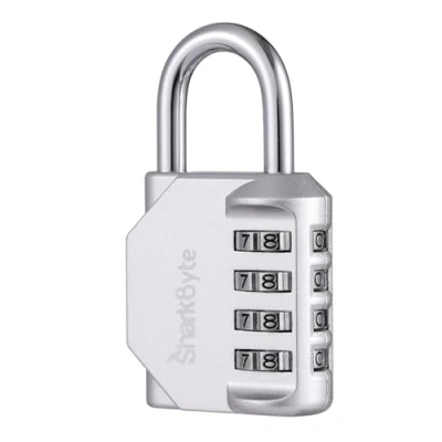 [Heavy Duty Outdoor Security] Premium SharkByte combination padlock engineered with a durable metal body and stainless steel shackle, offering reliable protection for lockers, sheds, gym bags, gates and toolboxes [VERSATILE] Designed for indoor and outdoor tasks. This weatherproof combination padlock is a reliable all-rounder. Its rust-resistant body ensures reliable outdoor use for sheds, gates, and outside storage. [4-Digit Resettable Code] Create a personal code with 10,000 possible combinations. The smooth dials offer precise control and easy operation for students, staff, gym users and contractors. [Keyless Convenience] Forget lost keys - enjoy secure, key-free access with a resettable combination design that’s simple to program and quick to update when needed. [Protected Reset Mechanism] Hidden reset system reduces accidental changes and prevents tampering, keeping your chosen code secure. [Trusted by UK Businesses] SharkByte combination locks are widely used across schools, Health facilities, gyms, contractors, delivery drivers and commercial storage units - reliable protection for high-footfall environments. [Multiple Colour Options] Now available in new vibrant and high-visibility colourways - ideal for organising equipment, colour-coding access, or quickly identifying your lock in busy shared spaces., Manufacturer: SharkByte Trading