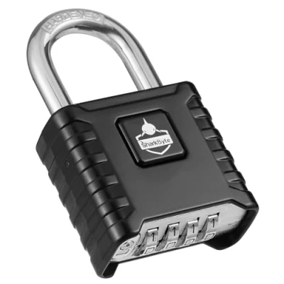 [Heavy Duty Security] Premium SharkByte 52mm padlock with 8mm thick stainless steel shackle and zinc alloy body – built to resist cutting, tampering and harsh outdoor conditions. [Weatherproof & Anti-Rust] Salt-spray tested for 180+ hours, ensuring proven protection against rain, snow and corrosion. Ideal for gates, fences, sheds, garages, gyms and warehouses. [4-Digit Resettable Code] 10,000 possible combinations provide enhanced security over traditional 3-digit locks. Resettable design makes it easy to reprogram your code when needed. [One-Button Locking System] Unique push-button release allows quick and secure locking/unlocking after entering your code – faster and more reliable than standard locks. [Hidden Password Reset & Anti-Error] Concealed reset mechanism reduces accidental changes, keeping your chosen code safe and secure. [Available in Black or Silver] Choose the colour that suits your style, available in 1-Pack or 2-Pack options – perfect for single or multiple entry points. [Trusted B2B Security Solution] SharkByte locks are trusted by schools, NHS, contractors, gyms, tradespeople and businesses for protecting lockers, cabinets, toolboxes and site equipment., Manufacturer: SharkByte Trading