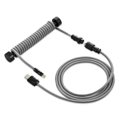 Optically twisted: unlike conventional cables, the twisted cable of the SKILLER SGK50 Aviator Cable Set is an eye-catcher. In addition to an even better look, a double textile coating also ensures a high level of safety. Always in shape: Thanks to the integrated cable rod, the cable remains in its visually beautiful twisted shape even after prolonged use and frequent movement of the keyboard. STABLE CONNECTION: The name-giving aviator connector of the SKILLER SGK50 Aviator Cable Set is connected to the keyboard via USB-C and via USB-A to the computer. Its screw thread ensures that the connection remains stable at all times.