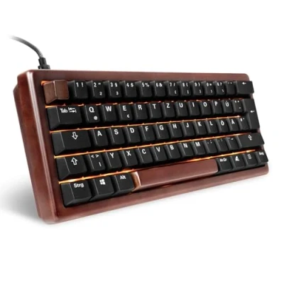 Modern and stylish: the Skiller SGK50 S4 Gen2 Wood PBT combines a rustic stylish wooden housing with modern design elements, such as RGB lighting and the stylish USB-C spiral cable, to create a unique look that attracts everyone's attention. YELLOW G PRO 3.0 SWITCHES AND PBT KEYCAPS PRE-INSTALLED: With a massive actuation force of 50 ± 15 g and an immersive, linear characteristic, the yellow switches from the latest Gateron generation are the optimum, which is what the high-quality and abrasion-resistant PBT keycaps of the SKILLER SGK50 SGS 4 Gen2 Wood PBT pre-installed under the hood. Individual typing feeling: Do you like it personally? No problem! Switches of your choice with 3 and 5 pins can be easily used with the Skiller SGK50 S4 Gen2 Wood PBT. Of course, the necessary tools for changing are already included. Rich key sound: To make the keyboard sound as good as it looks, we have directly installed a polycarbonate positioning plate and silicone cushioning for rich, dull sound without shrill noise. Full adjustment thanks to open source: Instead of annoying software installation, the SKILLER SGK50 S4 Gen2 Wood PBT relies on simple RGB lighting and macro programming as well as full customisation through the open source software VIA and QMK. COMPACT FORM FACTOR: The SKILLER SGK50 S4 Gen2 Wood PBT is visually distinguished by its slim form factor of 60 percent of a 3-block keyboard. Thanks to a double assignment of important buttons, however, there is no need to sacrifice functionality.