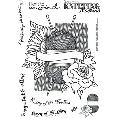 Knitters Delight A6 polymer clear stamp set Stamps have a naturally sticky back for direct mounting onto acrylic blocks Simple to align use and re-use Stamps do not yellow This beautiful set shows a knitting project in the making with a ball of wool and 8 knitting themed sentiments