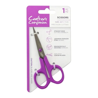STAY SHARPER FOR LONGER - Made from Japanese stainless steel, the Crafters Companion straight edge scissors are made for durability and resilience. The perfect sharp scissors for home, school and the office EASY-GRIP HANDLES - Ergonomically designed with maximum comfort and cutting precision in mind NON-STICK SCISSORS - Adhesive resistant Teflon-coated blades specifically designed to cut through adhesive-backed paper, tape and fabric with ease IDEAL FOR FINE DETAIL WORK - Fine straight-edged blades make these small scissors perfect for high precision crafts like sewing and knitting ALL-PURPOSE CRAFT SCISSORS - The perfect stationery scissors for all crafting projects from needlework to scrapbooking and card making