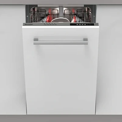 SHARP QW NS14I49EX EN, 45 cm Integrated, Dishwasher, 10 Place Settings, 2 Racks, Half Load Option, White Colour, Silver