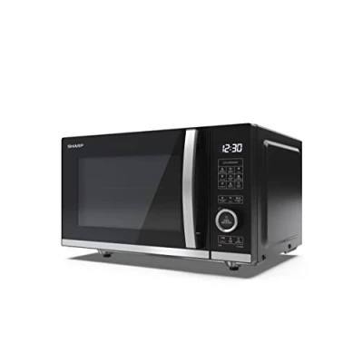 800 watt flatbed microwave with grill: Part of SHARP’s unique flatbed range. Semi digital microwave oven with grill and convection cooker, compact 20L capacity, pull handle and energy-saving eco mode Easy touch control, dial and digital display: Simple to read LED clock screen shows the time when the microwave is not in use, and features a handy kitchen timer function and child safety lock Powerful cooking at home: With 12 automatic cooking programmes and 10 levels of power, including drink or plate reheat, steam, grilling and timeweight defrost settings. Compact size for smaller kitchens Easy to use, easy clean counter-top microwave: The adjustable timer helps ensure your food is cooked ideally, while the flat contours are designed to be simply wiped clean. 12 month warranty included Space saving flat-bed oven with no turntable: Cooks, grills, defrosts and re-heats food evenly and quickly. Enjoy soups, jacket potatoes, popcorn, mug cakes, grilled steaks, meat and more in minutes
