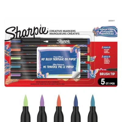 Sharpie Creative Marker Acrylic Paint Pens Earth Tones Water Based Markers No Bleed Ink Writes on Most Surfaces Brush Tip Crafting & Art Supplies Assorted Colours 5 Count