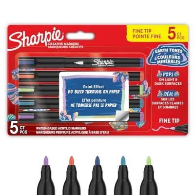 Sharpie Creative Marker Acrylic Paint Pens Earth Tones Water Based Markers No Bleed Ink Writes on Most Surfaces Fine Tip Crafting & Art Supplies Assorted Colours 5 Count